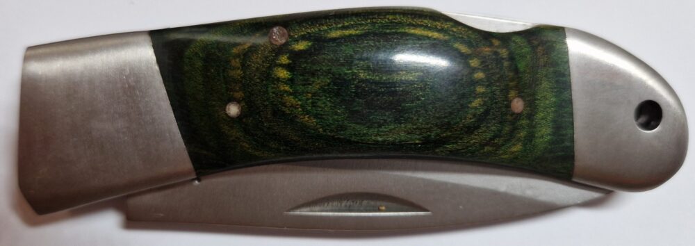 Coltello Lakota manico tipo legno in acciaio inox con lama da 6cm lunghezza totale 16cm chiuso 9,5cm