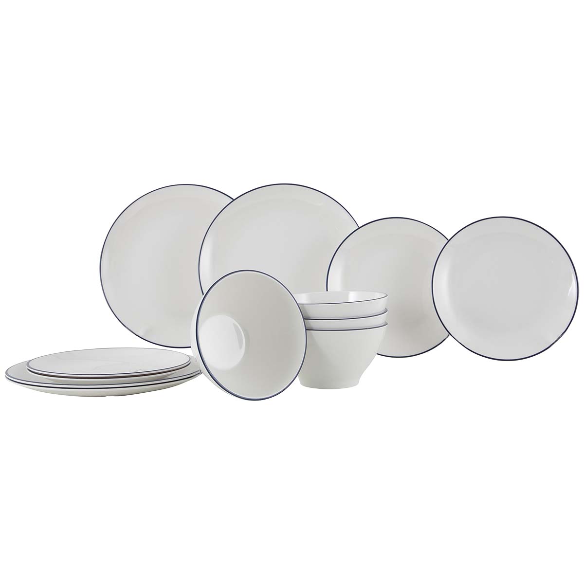 Set 12 pz Linea blu Gimex 4 piatti piani, 4 piatti frutta, 4 ciotole